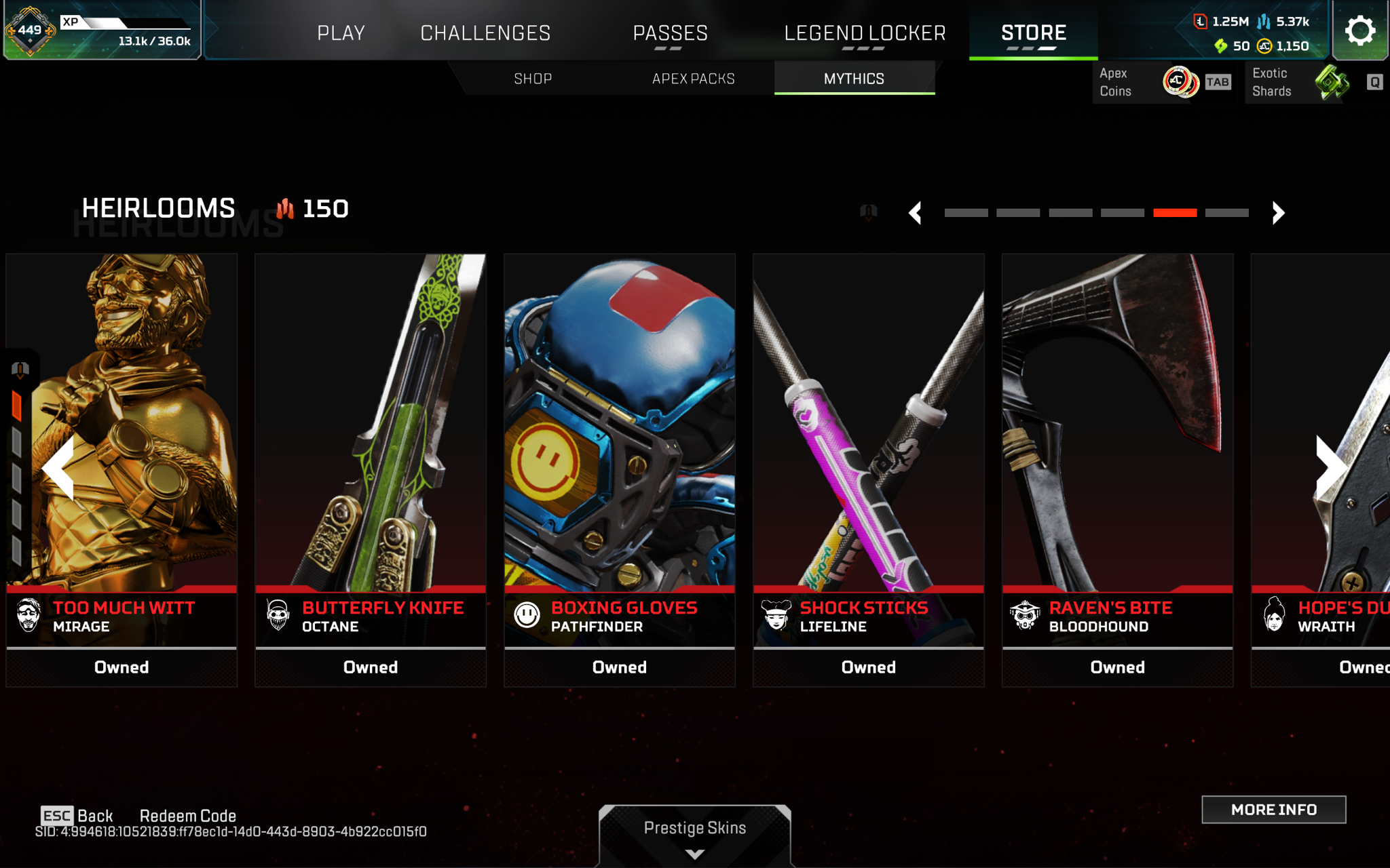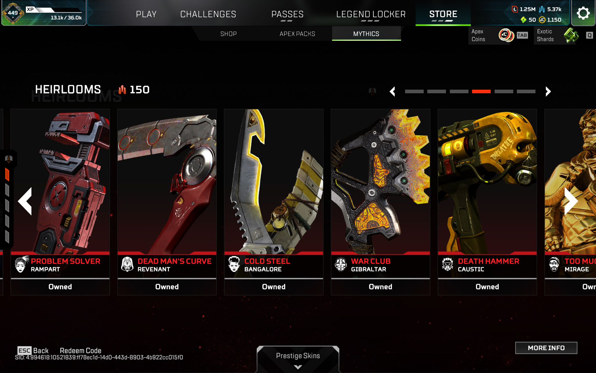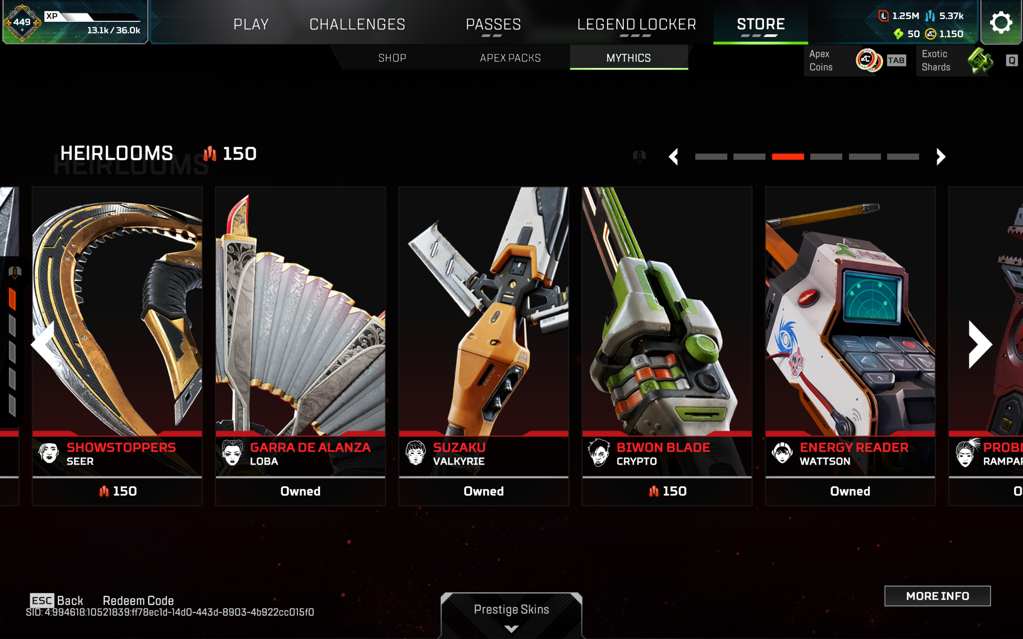 [EA+STEAM+OGE]6x pred badges(s8 s9 animated) 1259legendary+22heirlooms+150shards. All battlepasses are bought. For more information add me on discord: scorrrp